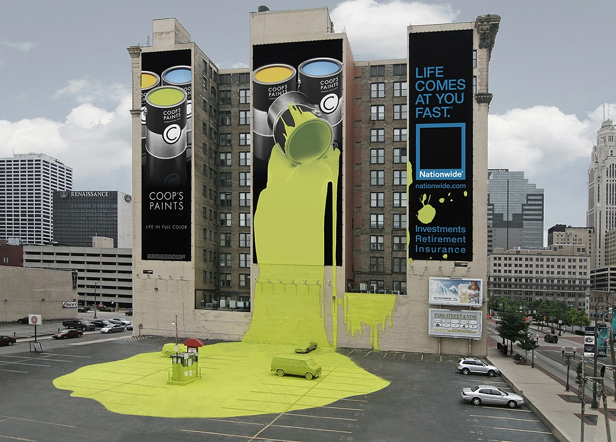 Unexpected, creative interventions in public spaces—chalk art, flash events, branded installations.